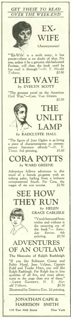 …I like the reviews included in this bookseller’s ad, especially the first one for the book Ex-Wife by Anonymous (it was written by Ursula Parrott, a writer of romantic fiction)…