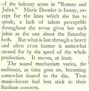Had you attended the premiere of The Hollywood Revue, perhaps you would have appreciated James Thurber’s observation that actors in talking pictures sound as if they are speaking into cracker boxes. In this hilarious piece (titled “The Roaring Talkies”), he proposed a solution. An excerpt: