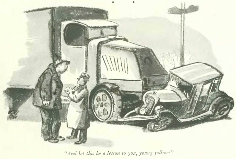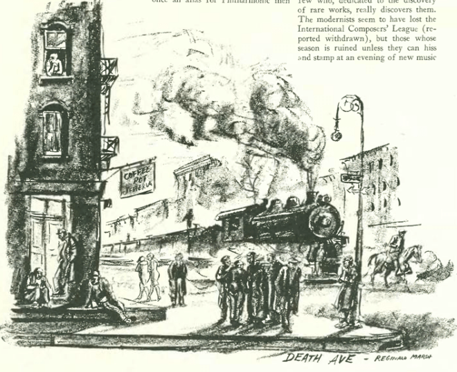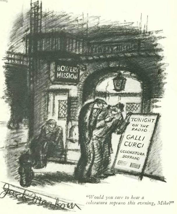 …as is this cartoon by Isadore Klein, perhaps the first in The New Yorker that depicted African Americans as something other than minstrel show stereotypes. Nevertheless, the rendering is still a bit crude — especially the boy’s face — as is the idea behind the “joke” — that a black boy could actually aspire to be a great violinist like Jascha Heifetz…