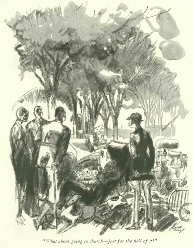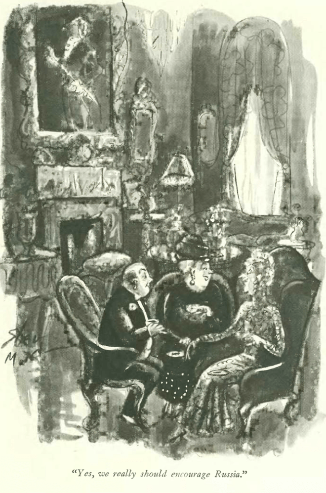…while Peter Arno illustrated this cultural exchange on the streets of New York…