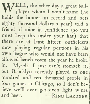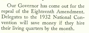 No doubt many a New Yorker enjoyed this bit of news from Howard Brubaker (in his column, “Of All Things”) regarding New York Governor Franklin D. Roosevelt, who later as president would preside over the end of Prohibition.