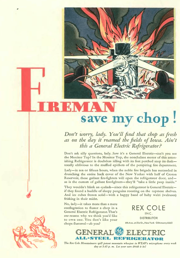 …this next one goes in my terrible ads file…did the makers of this GE refrigerator really want to depict it bursting into flames?…