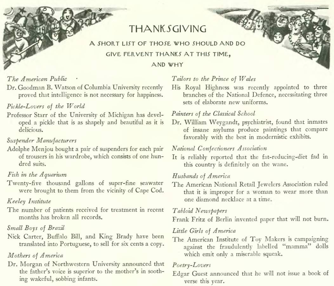 Humorist W. E. Farbstein gave readers plenty to be thankful for in this tribute to the Thanksgiving holiday…