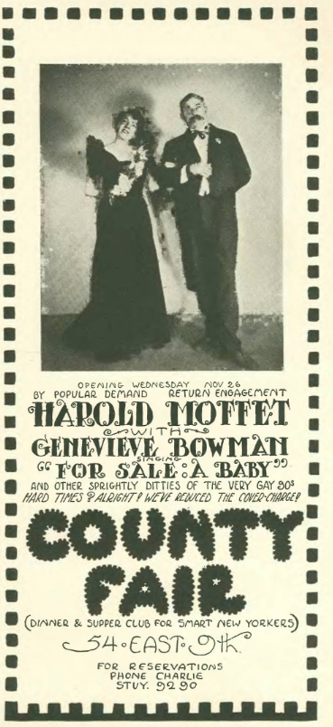 …County Fair, a Greenwich Village country-themed nightclub, offered the diversion of Moffatt and Bowman to take audiences’ minds off of hard times…