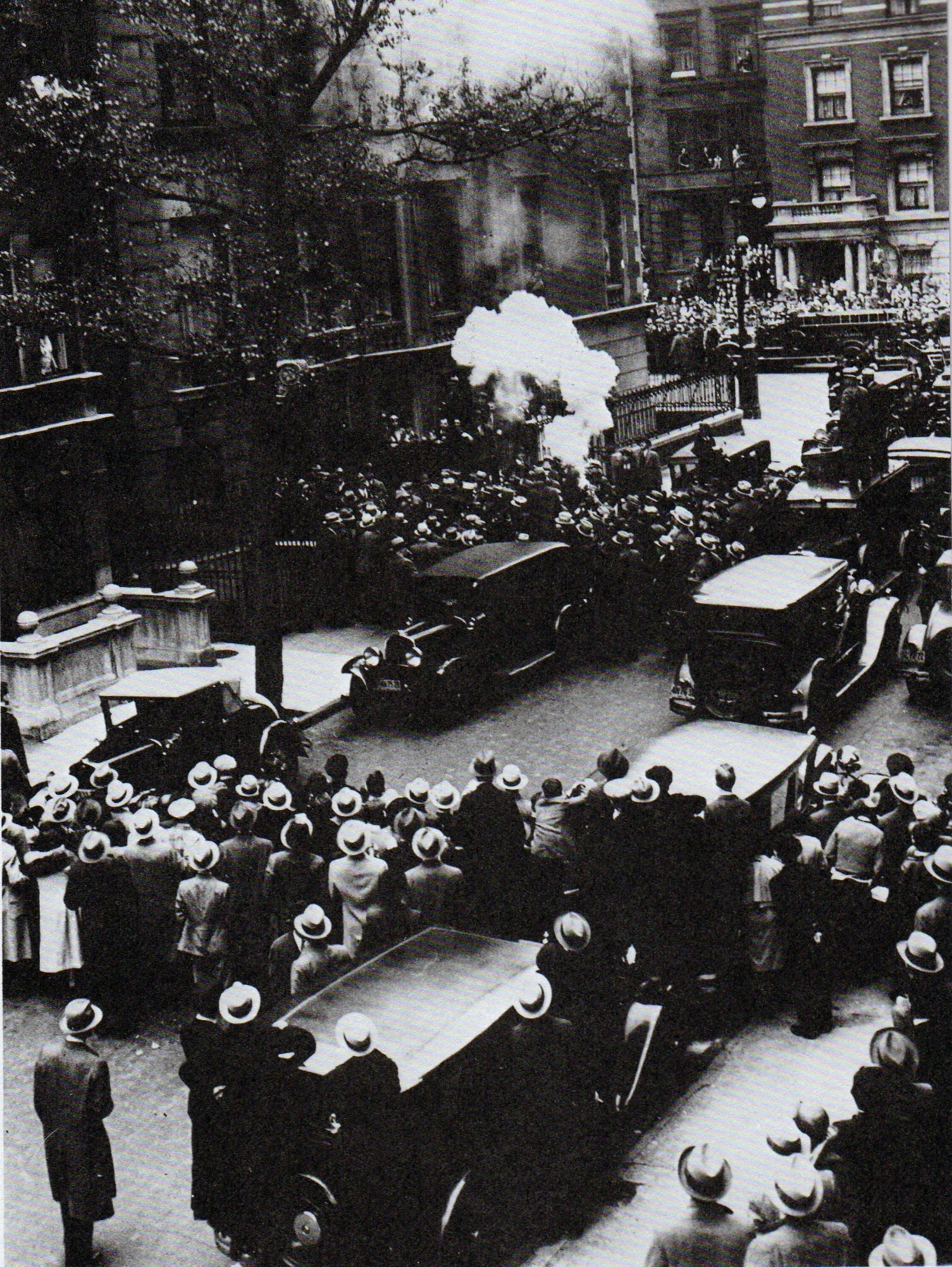 THEY NEEDED SOCIAL DISTANCING…On May 7, 1931, Francis “Two Gun” Crowley exchanged gunfire with police for nearly two hours from the fifth floor of a rooming house on West 91st Street. A force of 300 police fired an estimated 700 rounds at Crowley’s apartment while a crowd of 15,000 spectators surrounded the scene. Not sure why the police stood in a huddled mass beneath the window of the shooter. Strength in numbers, perhaps. (ephemeralnewyork.wordpress.com)