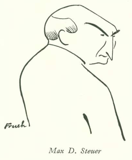 …on to our cartoonists, we have this caricature of Max Steuer by Al Frueh, rendered for a two-part profile…Steuer is perhaps best known for his successful defense of the factory owners after the 1911 Triangle Shirtwaist Factory Fire…