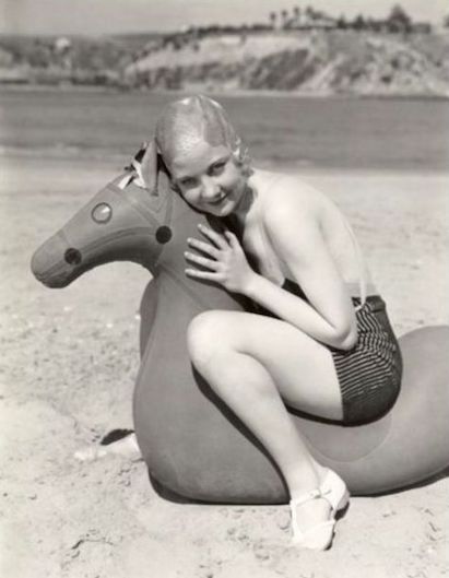 …for reference, here’s a 1930s photo of actress Una Merkel astride an inflatable horse like the one featured in the ad…