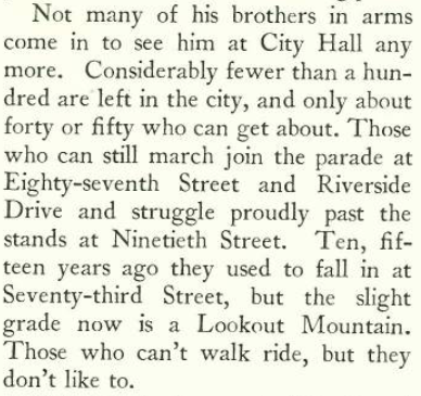 We are reminded of the span of time and history that separate us from 1931 with this small item in “The Talk of the Town” that notes “fewer than a hundred” Civil War veterans were still alive in New York City. We just marked the 76th anniversary of D-Day, an event still 13 years into the future for this New Yorker writer: