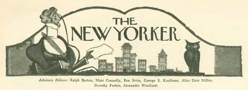 To lose a longtime contributor and friend must have been a real blow to the staff at The New Yorker. Barton had been there from the beginning, his name appearing on the magazine’s first masthead as an honorary advisory editor:
