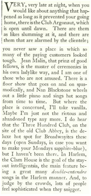 Long also sampled the offerings of less savory venues, such as the Club Argonaut, which was apparently frequented by mobsters…