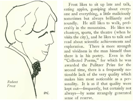 Novelist and poet Raymond Holden penned a profile of famed poet Robert Frost, who among things apparently enjoyed apples and a bit of gossip. A brief excerpt: