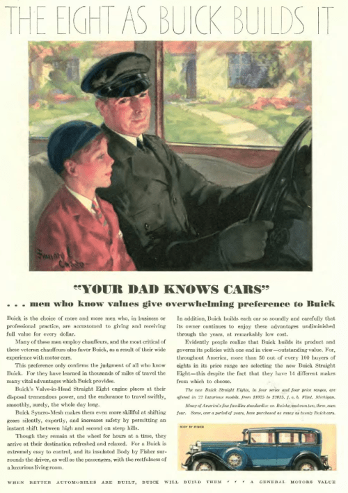 …Buick dialed up a patrician vibe with this ad that suggested a posh boy might be transported in one by the family’s driver…