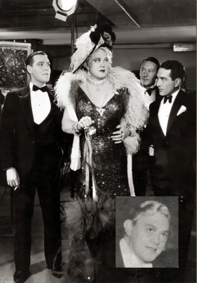 NOT AMUSED…Lois Long didn’t care for the antics of Gene Malin (center, and inset) who performed in front of a tough-looking crowd at the Club Argonaut. A popular drag artist who helped ignite the “Pansy Craze” in the 1920s and 30s, Malin was one of the first openly gay performers in Prohibition-era speakeasy culture. His career ended abruptly at age 25 in a car accident. (Wikipedia)