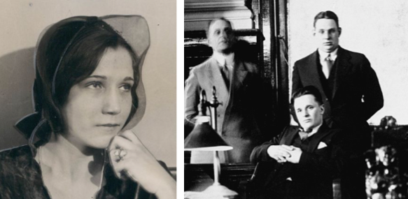 A CHARMED, TROUBLED LIFE…Clockwise, from top left, Ralph Barton with the love of his life, his third wife, actress Carlotta Monterey; Barton with best friend Charlie Chaplin, photographed by Nickolas Muray in 1927; after leaving Barton, Monterey would marry playwright Eugene O’Neill, who in a weird coincidence would become Chaplin’s father-in-law in 1943; a 1922 portrait of Carlotta by Barton; and a self-portrait from 1925, in the style of El Greco. “The human soul would be a hideous object if it were possible to lay it bare,” Barton wrote in 1926. (illustrationart.com/Pinterest/MCNY/curiator.com/npg.si.edu)