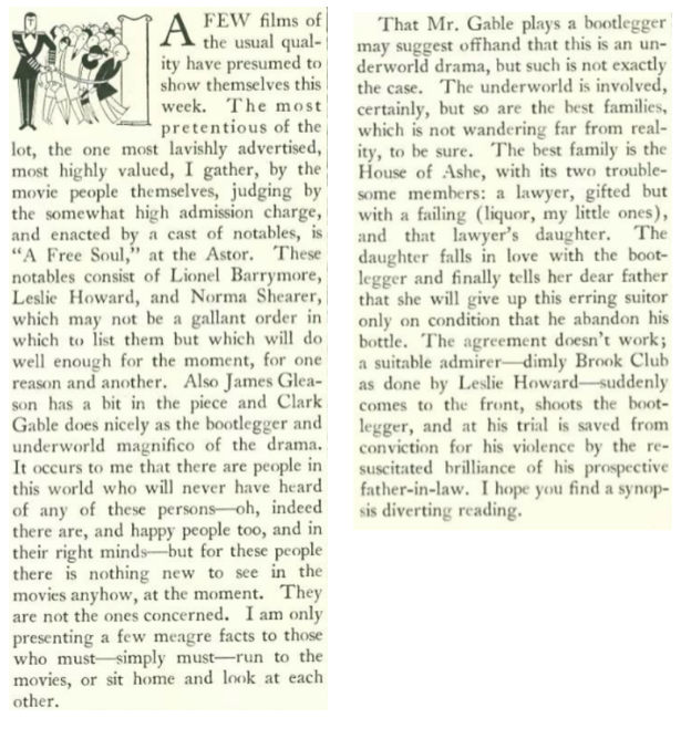 Clark Gable made such an impression as a charming rogue in 1931’s A Free Soul that it transformed him almost overnight from a bit actor to into one of Hollywood’s biggest stars of the 1930s.
