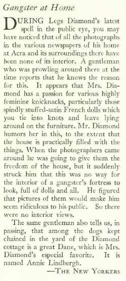 “The Talk of the Town” had some fun with a little-known aspect of a notorious gangster’s life; namely, the doll-filled house belonging to Jack “Legs” Diamond: