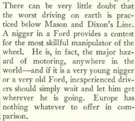 Unfortunately, Markey shared the sensibilities of many of his fellow Americans 89 years ago, and made this observation about drivers below the Mason and Dixon Line: