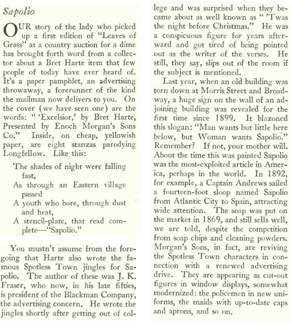 …”The Talk of the Town” mused about the advertising jingles made famous by the makers of Sapolio soap…