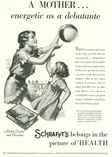 …which was in sharp contrast to the approach Schrafft’s took in this full-page ad featured in the April 25, 1931 New Yorker, which touted the health benefits of its candy…