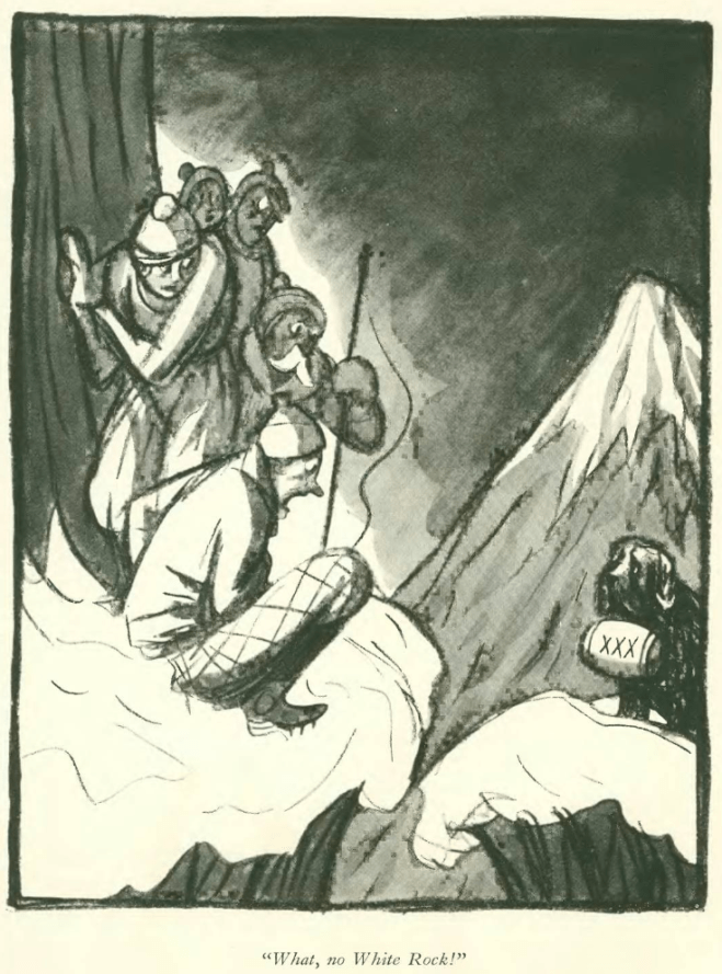…and Peter Arno reappeared in the cartoons with this full-page illustration of some desperate climbers…