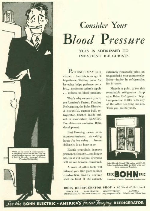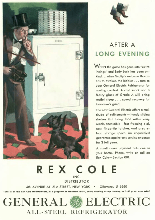 …you see a lot of tobacco ads because cigarette manufacturers were one of the few industries still turning a profit during the first years of the Depression…men and women were smoking like crazy, maybe to calm their nerves over the performance of their refrigerators…
