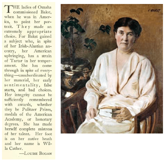 Bogan concluded the profile with this note about Lèon Bakst, who was commissioned in 1923 to paint a portrait of Cather while she visiting Paris (image courtesy Omaha Public Library):