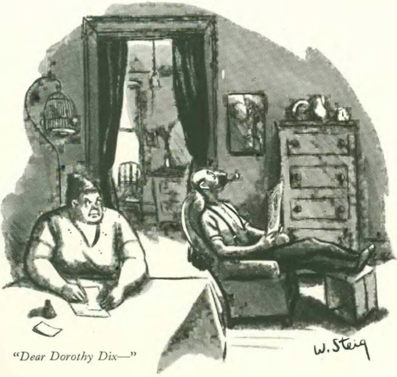 …and William Steig summoned the advice of Dorothy Dix, a forerunner of “Dear Abby” who was the most widely read female journalist of her time…