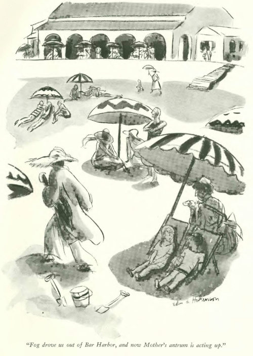 …or you could have stayed closer to home at a Long Island beach resort, as Helen Hokinson illustrated, and as we segue into our cartoons…