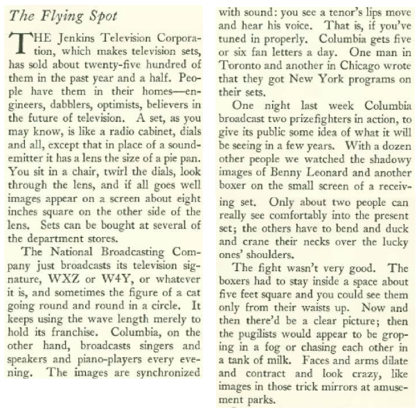…in which James Thurber wrote about his experience with early television in “The Talk of the Town”…