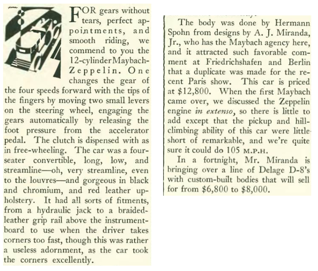 The “Motors” column featured the latest luxury offering from Germany, the massive 12-cylinder Maybach Zeppelin, which would set you back a cool $12,800 in 1931 (roughly $200,000 in today’s currency). Named for the company’s production of Zeppelin engines in the World War I era, the car weighed 6,600 pounds (3,000 kg).