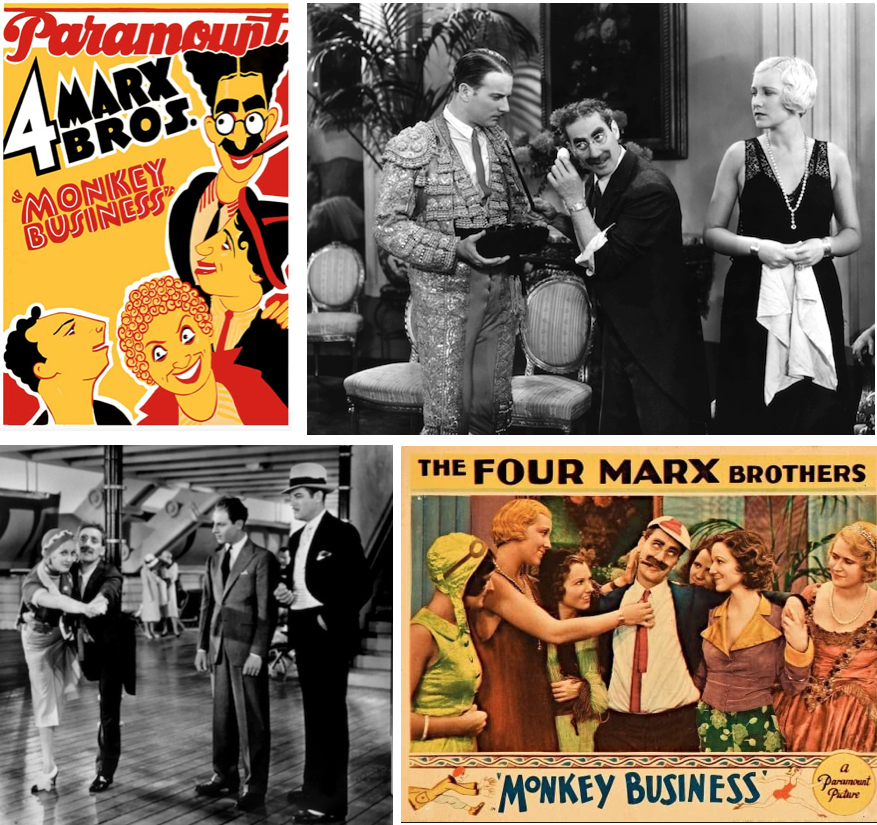 Monkey Business was the first film to label the troupe the “Four Marx Brothers” (a billing that would continue through their Paramount years). A fifth brother, Gummo, left the team early and went on to launch a successful raincoat business.