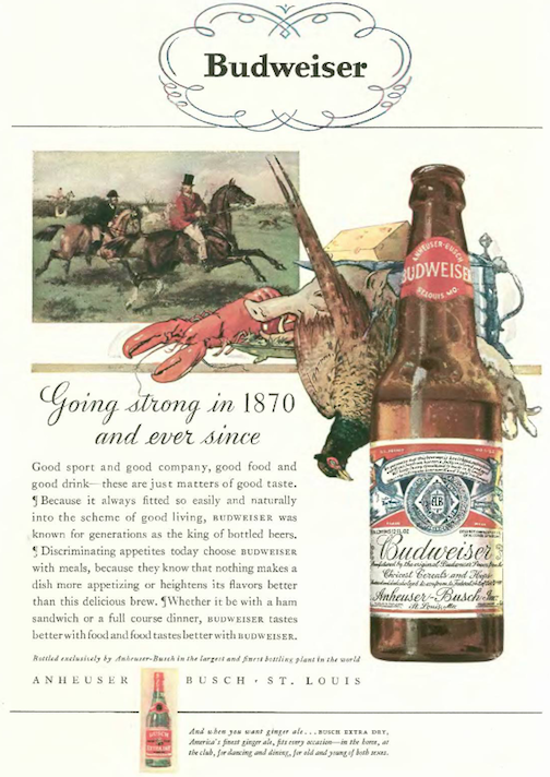 …while Budweiser, perhaps anticipating the end of Prohibition, reminded readers of the refreshing flavor of its beer, even if it was non-alcoholic…