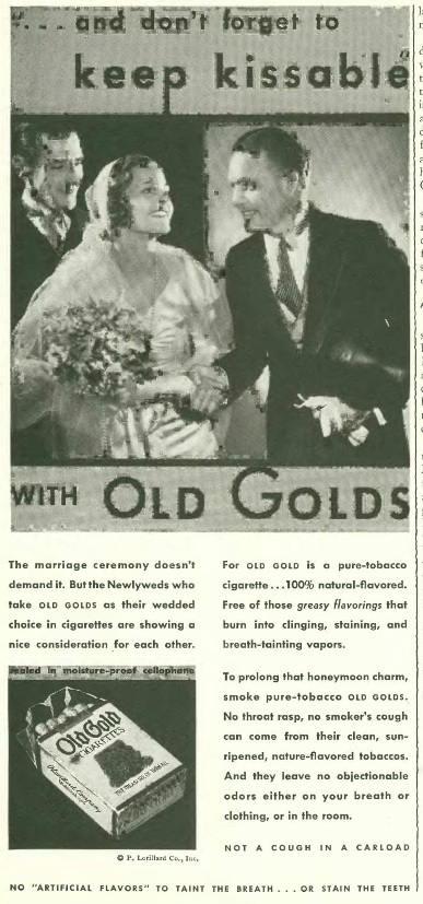 …while Lorillard went a step further and claimed its Old Gold brand made a smoker downright kissable…