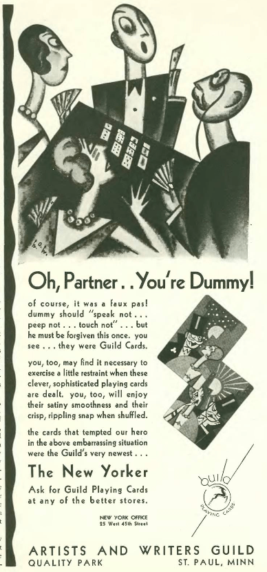 …New Yorker cartoonist/illustrator H.O. Hofman contributed this drawing on behalf of the Artists and Writers Guild, offering their designer bridge cards…