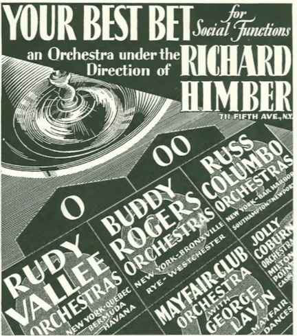 …if you’ve never heard of Richard Himber, he made a name for himself in New York beginning with his days in vaudeville and Tin Pan Alley. Described in a Wikipedia entry as “American bandleader, composer, violinist, magician and practical joker,” Himber ran a band-booking agency before forming an orchestra of his own at the Essex House that performed over NBC Radio…