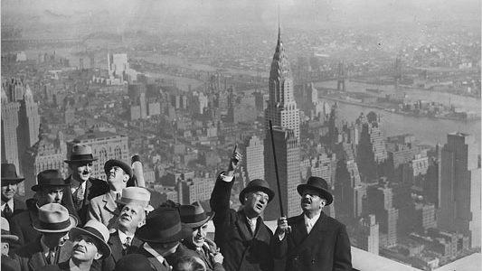 Above: Former Governor Alfred E. Smith points out the sights of the city to Governor Franklin D. Roosevelt from an Empire State Building observation floor on May 1, 1931. (Empire State Realty Trust)