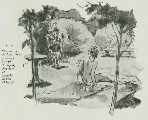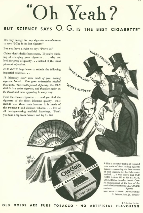 …time to step out for a smoke with another Old Gold ad illustrated by Peter Arno…