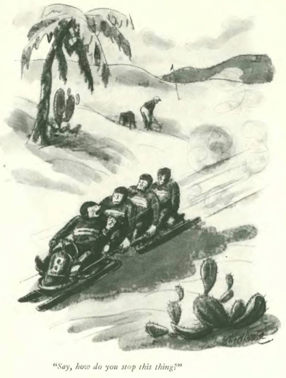 …Peter Arno’s Lake Placid would never be the same for his mustachioed millionaire “walruses” after the previous year’s Winter Olympic Games…