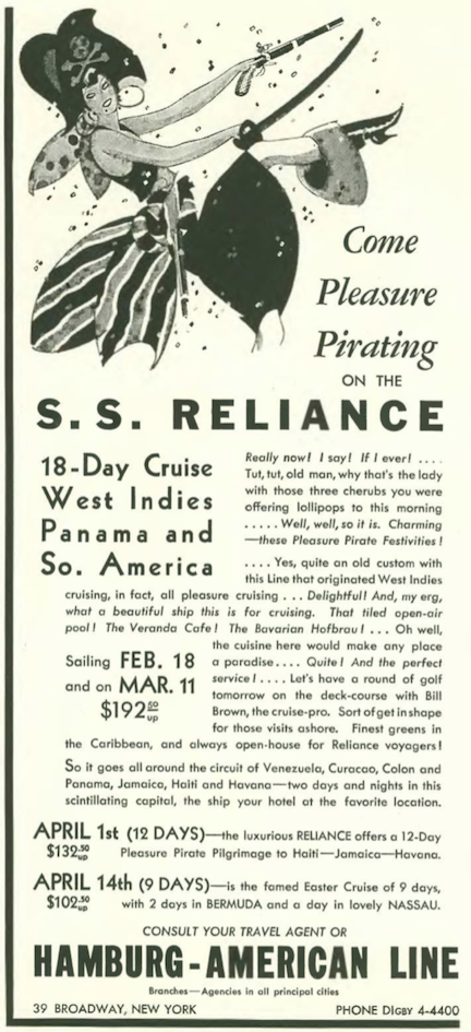 Hitler aside, the German-owned Hamburg-American Line was still serving peaceful purposes when it advertised the comfort of its “stabilized ships” on transatlantic voyages…these sister ships of the Hamburg-American Line were all destroyed during World War II…the SS New York and the SS Deutschland were both sunk by the British RAF in 1945…The SS Albert Ballin and the SS Hamburg sank after hitting Allied mines…