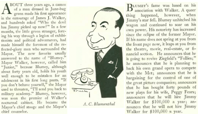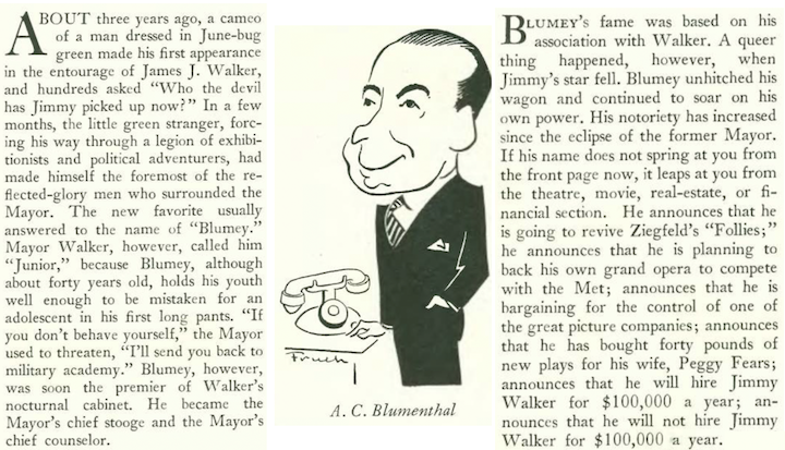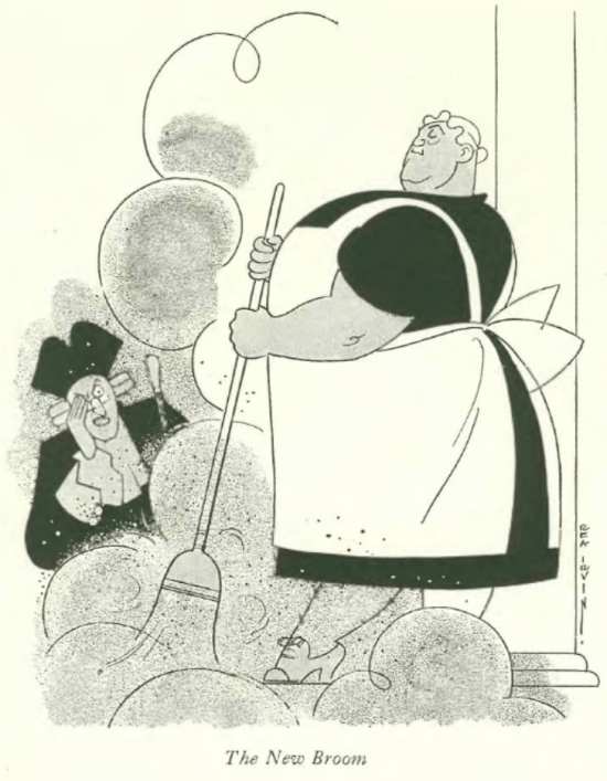 …here’s a great caricature by Rea Irvin of New York’s new mayor John P. O’Brien, using his new broom to sweep away the corruption of the deposed Jimmy Walker and his Tammany Hall cronies…