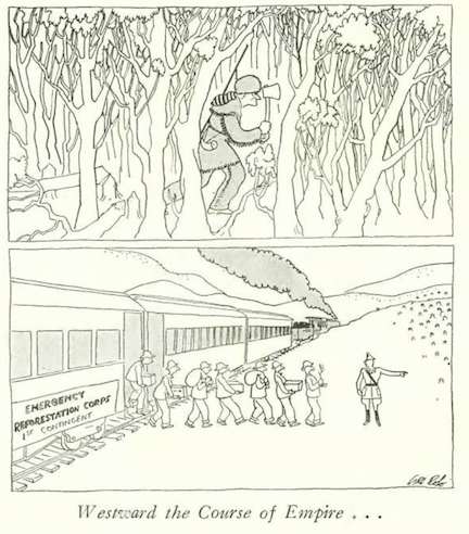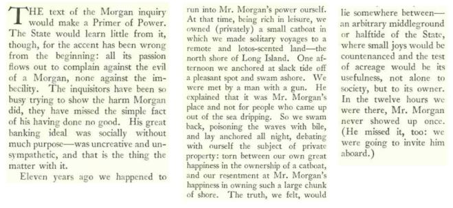…in which Thurber continued his tales from My Life and Hard Times with “The Car We Had to Push”…also in the issue was a profile of “Bolshevik Businessman” Peter Bogdanov, written by foreign correspondent William C. White. An excerpt: