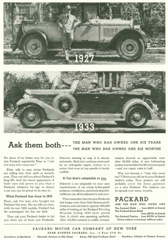 …and it’s no coincidence that the makers of Goodyear tires featured a 1933 Packard to tout the durability of their product…