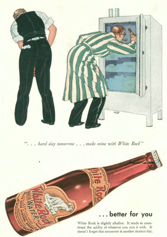 Prohibition wouldn’t be officially repealed until Dec. 5, 1933, but that didn’t stop New Yorkers from enjoying their favorite adult beverage, including this pair. What on earth is that man on the left doing? It appears he’s opening a bottle of White Rock (glimpsed between his legs), but why with his back turned?…