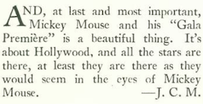 While millions in the Soviet Union were dying of famine and other Stalin-inspired atrocities, Americans were keeping their Depression-era spirits up at the movies, including critic John Mosher, who called the latest Mickey Mouse cartoon “a beautiful thing”…