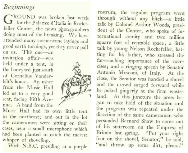 …let’s look in on Morris Markey, who described all of the skyward thrills in his “A Reporter at Large” column in the August 12 issue. Markey also offered a “bold prophecy” that the ticker-tape parades and “hysterical cheers” could not go on forever.