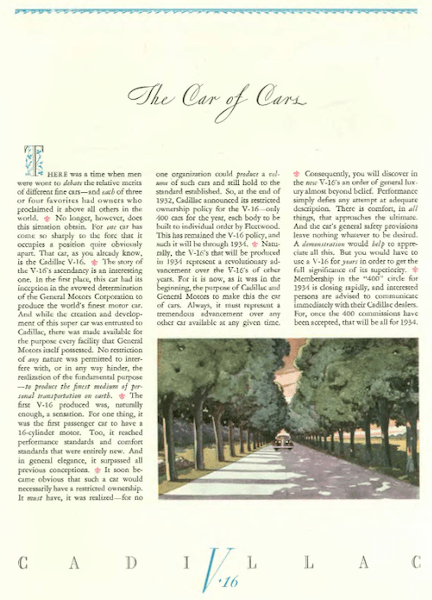 …the Cadillac V-16 was a truly massive automobile, but in contrast to the Nash ad, you can barely see the car as it approaches from the vanishing distance…