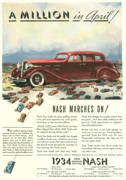 …this ad from Nash looks like a scene from Attack of the 50 Foot Woman, if she had a car to match, that is…