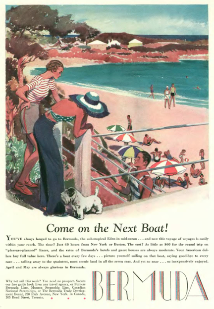 Wanna get away? This colorful advertisement beckoned New Yorker readers to take the next boat to sunny Bermuda…