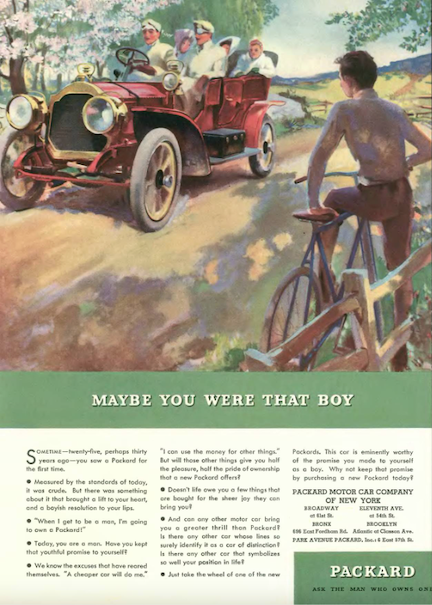 …who would rather be driving a Packard, here appealing to the nostalgic sensibilities of old-timers who had the means to afford one…