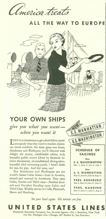 …perhaps you wanted to go to Europe on a ship with fewer Nazis on board…in that case you could grab a berth on a ship with the United States Lines, and hang out with these stiffs…